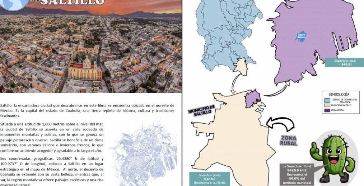 “Explora Saltillo, un Atlas para Pequeños Exploradores» nació porque en el 2023 llevamos a cabo un proyecto para trabajar con información territorial en primarias públicas y nos dimos cuenta que no existía información específicamente de Saltillo”, dijo.